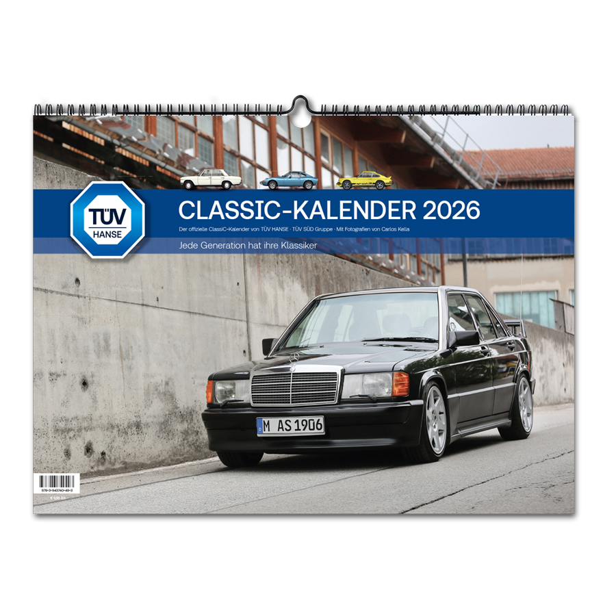 Der offizielle ClassiC-Kalender 2026 von TÜV HANSE GMBH • TÜV SÜD Gruppe mit 12 klassischen Fahrzeugen, die von Carlos Kella | Photography inszeniert wurden ist ab sofort vor Ort bei im TÜV Hanse Service-Center Hamburg-Mitte (Brackdamm 16, 20537 Hamburg) und bei SWAY Books im Webshop erhältlich!