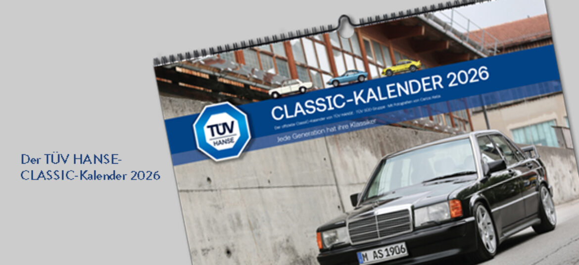 Der offizielle ClassiC-Kalender 2026 von TÜV HANSE GMBH • TÜV SÜD Gruppe mit 12 klassischen Fahrzeugen, die von Carlos Kella | Photography inszeniert wurden ist ab sofort vor Ort bei im TÜV Hanse Service-Center Hamburg-Mitte (Brackdamm 16, 20537 Hamburg) und bei SWAY Books im Webshop erhältlich!